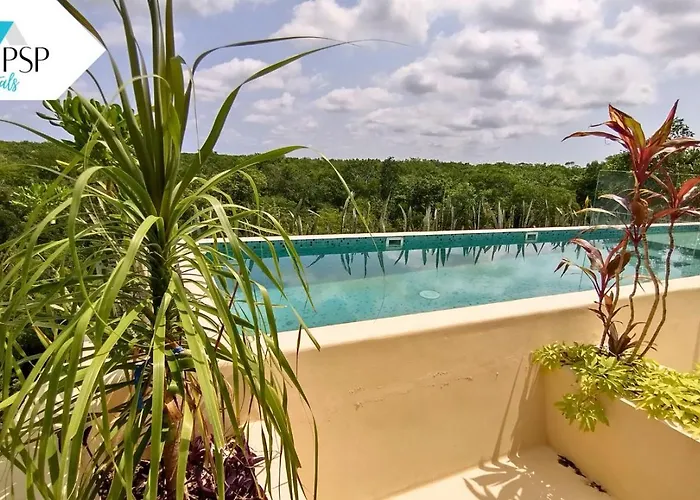 Ao oferecer piscina no último andar, terraço e jardim, o apartamento Alojamiento Exclusivo En Condominio Panoramic, Tulum está localizado a 3.3 km de Cenote Esqueleto. O apartamento está a 54 minutos de carro do aeroporto de Playa del Carmen.